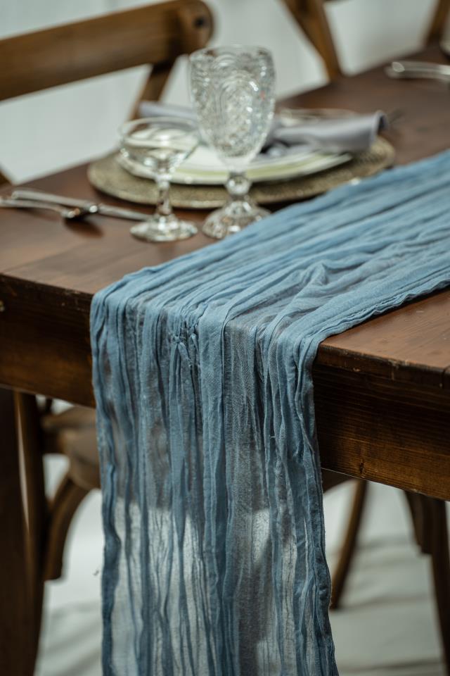 35" x 118" Misty Blue Cheesecloth Runner